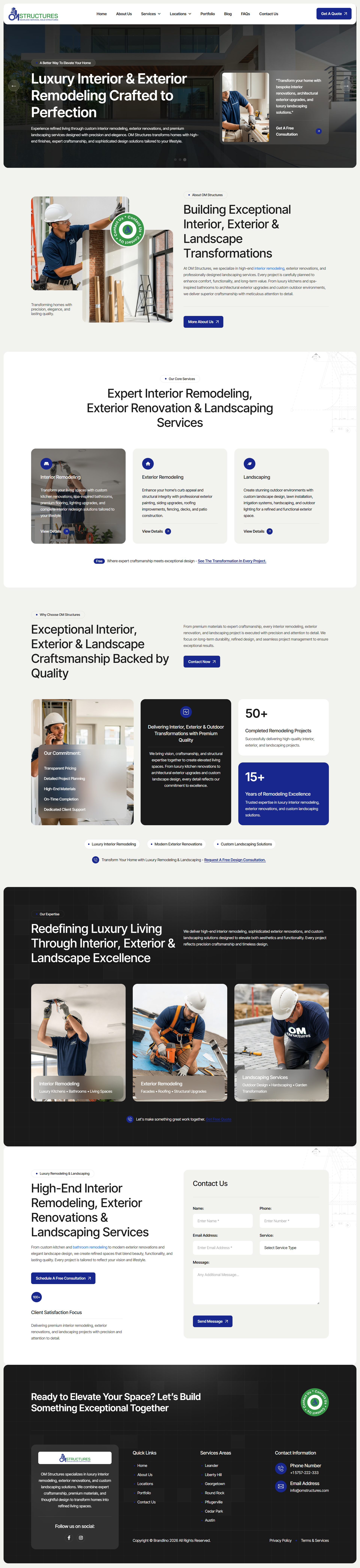 OM Structures had the portfolio and reputation of a top-tier remodeling firm — but their website didn't reflect it. Static pages, no project gallery, and a contact form that went nowhere were costing them real leads.